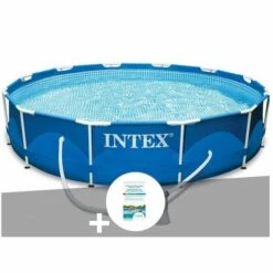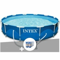 Kit Piscine Tubulaire Intex Metal Frame Ronde 3,66 X 0,76 M + Kit De Traitement Au Chlore – Bleu
