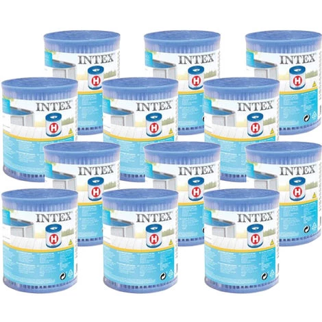 Cartouches de filtration H vendues en lot de 3, 6 ou 12.Les cartouches de filtration de type H sont compatibles avec l’épurateur à cartouche 1,25 m³/h de la marque Intex.Elles sont indispensables pour la filtration de votre piscine. Facilement nettoyage, nous vous conseillons de la nettoyer 2 fois par semaine et d’alterner l’utilisation de 2 cartouches pour prolonger leur durée de vie.Matière : fibre dacron