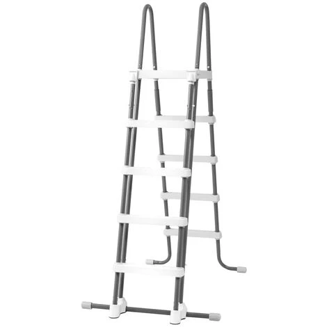 L’échelle de piscine à 5 marches est dotée d’un cadre en acier résistant à la rouille. Les marches en plastique robustes et antidérapantes sont fermement fixées au cadre, ce qui permet aux nageurs d’entrer ou de sortir dans et de la piscine en toute sécurité. Les marches à l’extérieur de l’échelle peuvent être repliées pour empêcher les enfants d’utiliser l’échelle. Lorsque la piscine n’est pas utilisée, l’échelle peut être rapidement détachée et retirée de la piscine.