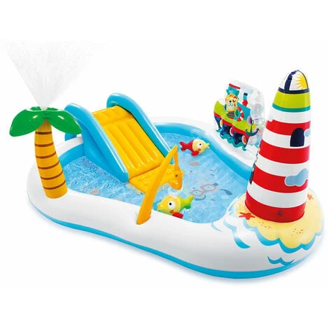 - Inclus : toboggan avec tapis de récéption, canne à pêche + 2 poissons gonflables, 6 balles