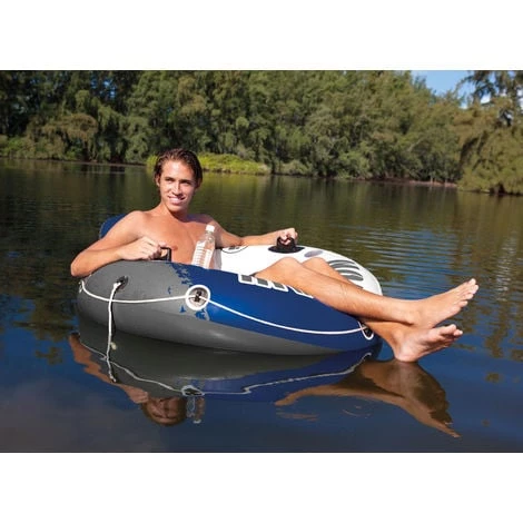 Fauteuil gonflable River Run de la marque Intex. Diamètre : 135 cm. Disponible en rouge, en camouflage ou en bleu.