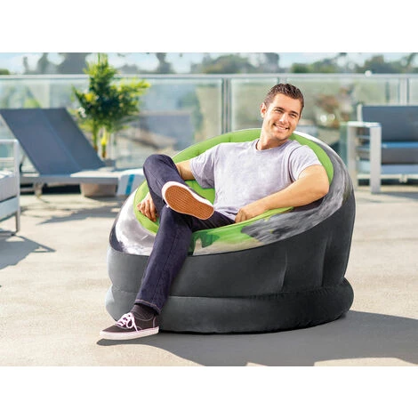 Un fauteuil gonflable pour l’intĂ©rieur et l’extĂ©rieur. Moderne, sophistiquĂ© et confortable ce fauteuil gonflable s’intègrera parfaitement dans votre salon, votre chambre ou sur votre terrasse. Son design plaira aux adolescents, aux Ă©tudiants et aux jeunes professionnels. Son revĂŞtement est waterproof et son gonflage rapide (pompe non incluse). Une vĂ©ritable invitation au farniente ! En vinyle gonflable, cet objet de couleur gris Ă©gayĂ© de vert en son centre dispose dune forme arrondie vĂ©ritable bulle accueillante. Pourvu d’un fond enforcĂ©, il ne craint pas les brindilles et autres reliefs granuleux du jardin. Une fois posĂ©, il reste bien en place car sa base accroche bien au sol. Confort garanti. Le coeur du fauteuil Lounge Onyx Intex est matelassĂ© de façon Ă rĂ©partir correctement l’air dans toutes les parties, ce quirend l’ensemble très confortable. L’ergonomie se conjuge Ă un style contemporain, agrĂ©able Ă l’oeil, d’autant plus que la touche de vert centrale illumine ce meuble gris foncĂ© et transparent tout en rondeurs. Ce fauteuil gonflable très costaud, en PVC renforcĂ©. Dimension gonflĂ© 112 x 109 x 69 cmLe fauteuile gonflable Onyx Intex doit ĂŞtre lester avec de l’eau a sa base pour une utilisation extĂ©rieure.