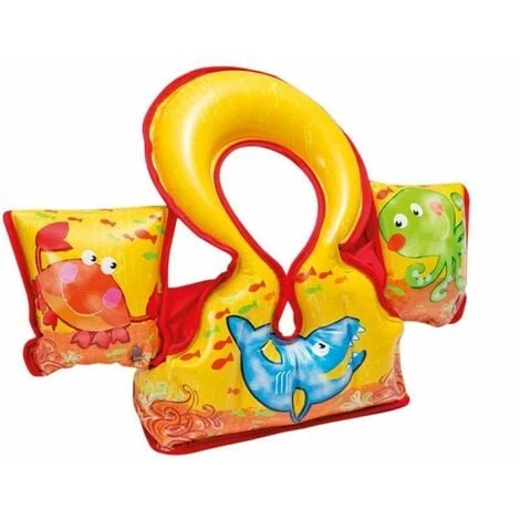 Gilet de natation Combi Nage gonflable – Intex.Couleur : multicouleur. Dimensions : Hauteur : 44 cm x Largeur : 66 cm. Matière : vinyle et textile dans les émmanchures.Le gonflage s’effectue manuellement (gonfleur non inclus).
