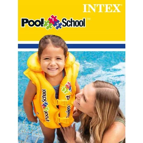 Het Intex Deluxe Swim Vest Pool School Step 2 zwemvest heeft drie luchtkamers en een opblaasbare kraag. Op het vest zijn twee gespen geplaatst. Geschikt voor kinderen van 3 tot 6 jaar.