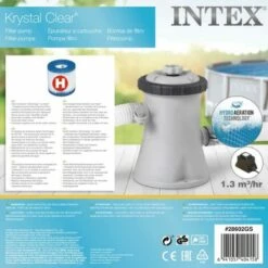 Handige filterpomp van Intex met een capaciteit van 1,25 m³/u; geschikt voor zwembaden met een maximale inhoud van 5.000 liter.Met deze pomp houd je het zwembadwater prima helder en mooi schoon. Het water van je zwembad circuleert en wordt tegelijk tot aan de kleinste vuildeeltjes gefilterd.Maak de pomp met de aansluitslangen van 150 cm goed vast met de koppelstukken van 32 mm op de in- en uitgang. Gebruik hiervoor de meegeleverde slangklemmen. Deze filterpomp staat voor schoon en helder water. De pomp houdt het water in beweging door steeds het water uit het zwembad te zuigen.