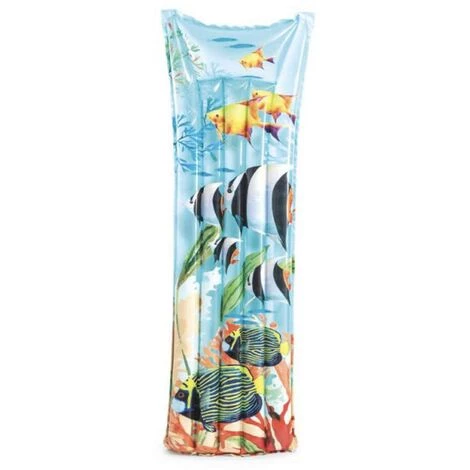 Idéal pour la piscine ou à la plage, le matelas gonflable Fashion poissons d’Intex pour 1 personne rendra votre été inoubliable.