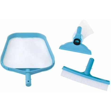 Une sélection d’accessoires indispensables pour entretenir sa piscine.Kit :- Épuisette surface- Brosse paroi 25cm- Tête balai venturi avec sac à débrisCaractéristiques :- Compatible avec manches 50004 et 50005- Poids : 800 grammes