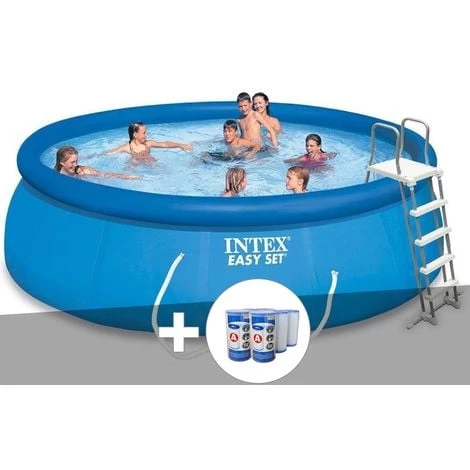 Piscine gonflable Easy Set ronde de la marque Intex de dimensions 4,57 x 1,22 m. Sa structure gonflable et son équipement au complet vous permettront de profiter des joies de la baignade et des jeux d’eau en quelques minutes. Parfaite pour s’amuser, se prélasser ou pour apprendre aux enfants à nager, la piscine gonflable Easy Set convient aussi bien aux jeunes enfants comme aux plus grands. Les dimensions de la piscine gonflable ronde lui permettent d’être installée dans un petit jardin. Elle est vendue avec l’équipement suivant :• Épurateur à cartouche 3,8 m³/h avec sa cartouche de filtration de type A• Bâche de protection pour protéger l’eau de votre bassin• Tapis de sol pour protéger le fond du liner.• Échelle de sécurité avec marches amovibles pour entrer et sortir du bassin en toute sécuritéPour compléter votre piscine, une option << Bâche à bulles >> est disponible, voir << Piscine autoportée Intex Easy Set 4,57 x 1,22 m + Bâche à bulles >>