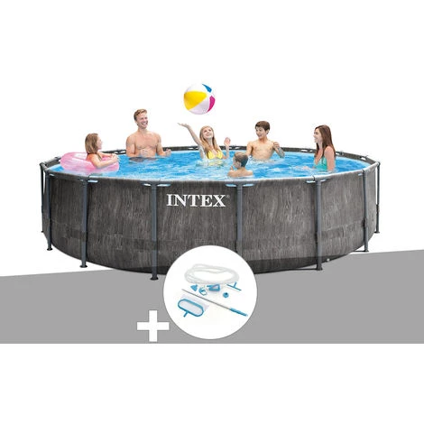 Kit Piscine Tubulaire Intex Baltik Ronde 4,57 X 1,22 M + Kit D’entretien – Gris
