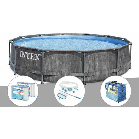 Kit Piscine Tubulaire Intex Baltik Ronde 5,49 X 1,22 M + 6 Cartouches De Filtration + Kit D’entretien + Bâche à Bulles – Gris