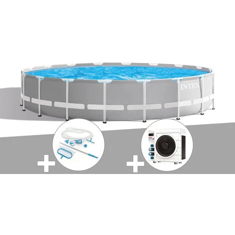 Kit Piscine Tubulaire Intex Prism Frame Ronde 5,49 X 1,22 M + Kit D’entretien + Pompe à Chaleur – Gris