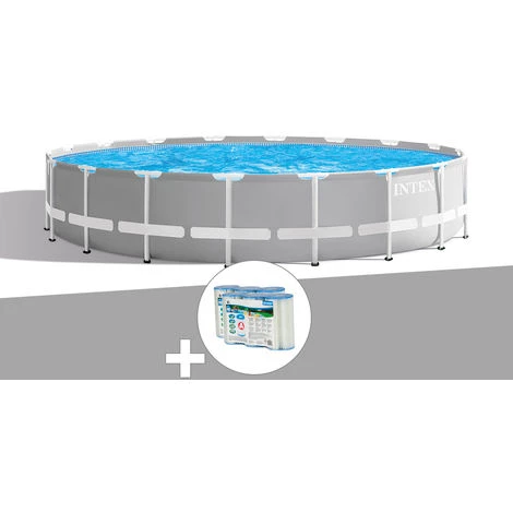Kit Piscine Tubulaire Intex Prism Frame Ronde 6,10 X 1,32 M + 6 Cartouches De Filtration – Gris