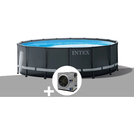 Kit Piscine Tubulaire Intex Ultra XTR Frame Ronde 4,88 X 1,22 M + Pompe à Chaleur – Gris