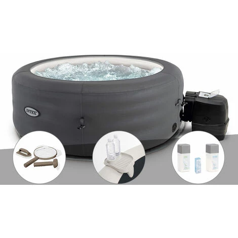 Kit Spa Gonflable Intex PureSpa Access Rond Bulles 4 Places + Kit D’entretien + Porte-verre + Kit De Traitement Brome – Gris
