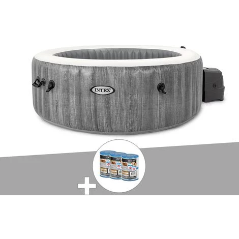 Kit Spa Gonflable Intex PureSpa Baltik Rond Bulles 4 Places + 6 Filtres – Gris