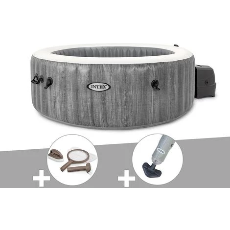 Kit Spa Gonflable Intex PureSpa Baltik Rond Bulles 6 Places + Kit D’entretien + Aspirateur – Gris