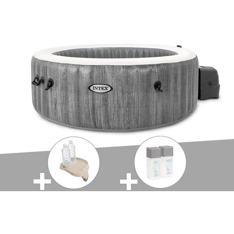 Kit Spa Gonflable Intex PureSpa Baltik Rond Bulles 6 Places + Porte-verre + Kit Traitement Brome – Gris