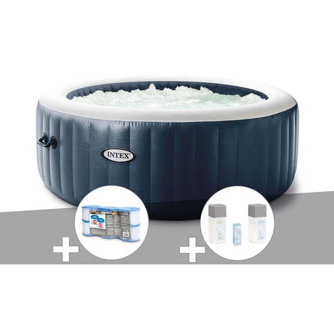 Kit Spa Gonflable Intex PureSpa Blue Navy Rond Bulles 4 Places + 6 Filtres + Kit Traitement Brome – Bleunuit