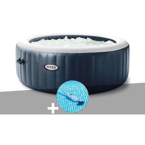Spa gonflable Pure Spa rond à bulles 4 places couleur bleu nuit. La couleur Blue Navy, est une couleur inédite. Structure en Fiber Tech, plus solide, plus ferme et plus résistante.
