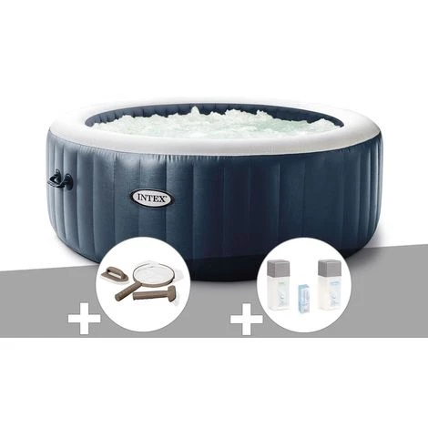 Kit Spa Gonflable Intex PureSpa Blue Navy Rond Bulles 4 Places + Kit D’entretien + Kit Traitement Brome – Bleunuit