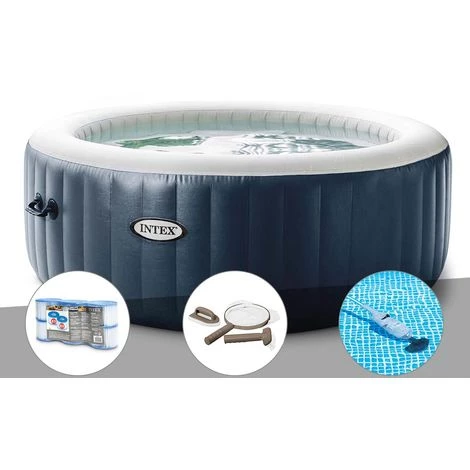 Kit Spa Gonflable Intex PureSpa Blue Navy Rond Bulles 6 Places + 6 Filtres + Kit D’entretien + Aspirateur – Bleunuit