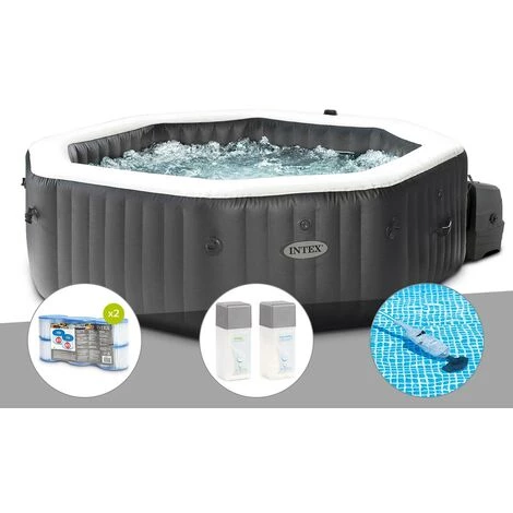 Spa gonflable octogonal 4 places noir de la marque Intex. Ce spa est le modèle haut de gamme de la gamme de jacuzzis gonflables de la marque Intex.