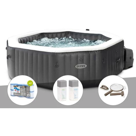 Spa gonflable octogonal 4 places noir de la marque Intex. Ce spa est le modèle haut de gamme de la gamme de jacuzzis gonflables de la marque Intex.