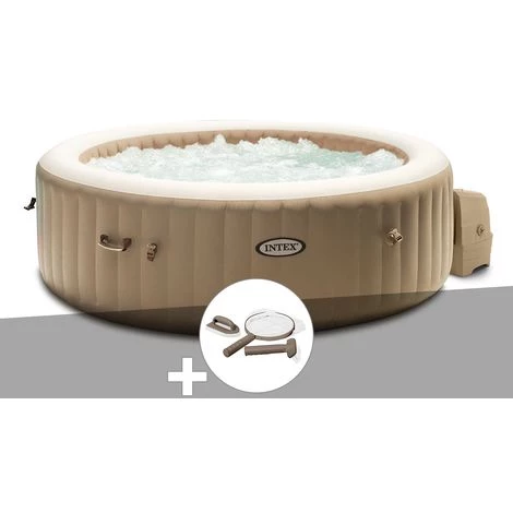 Kit Spa Gonflable Intex PureSpa Sahara Rond Bulles 4 Places + Kit D’entretien – Beige