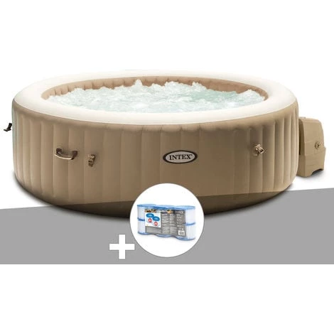 Spa gonflable de la marque Intex, modèle rond 6 places à bulles, coloris beige