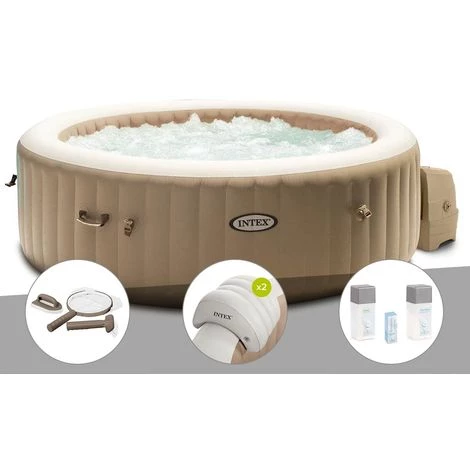 Spa gonflable de la marque Intex, modèle rond 6 places à bulles, coloris beige
