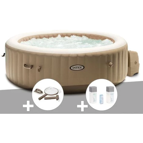 Spa gonflable de la marque Intex, modèle rond 6 places à bulles, coloris beige