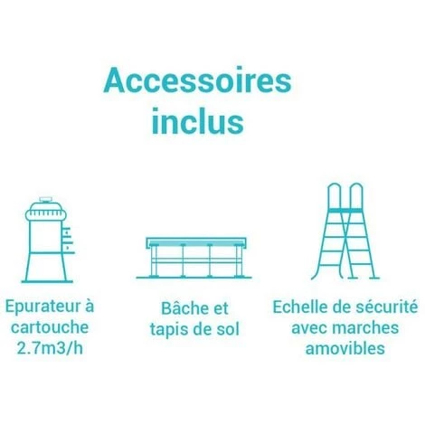 Cette piscine est livrée en kit à monter soi même. Elle comprend :