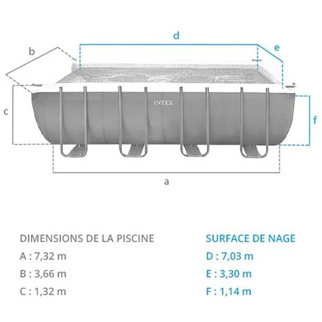 Dimensions surface de nage : 7,03 x 3;30 x 1,14 m