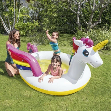 Idéale lors des chaudes journée d’été, la piscinette fontaine gonflable Licorne Magique d’Intex rendra l’été dans le jardin inoubliable.