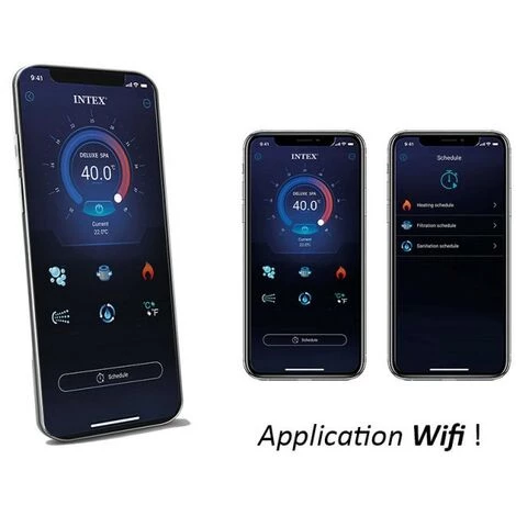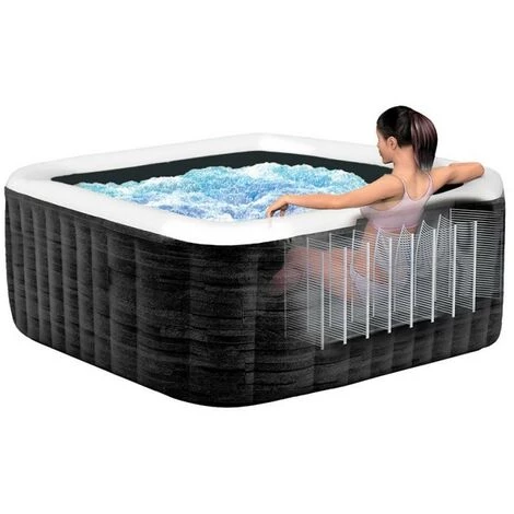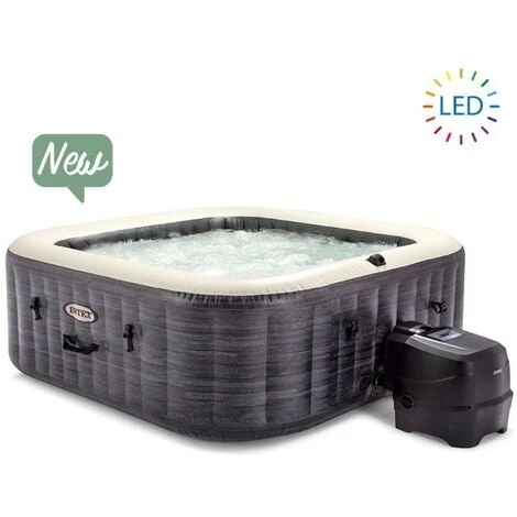 Prélassez vous dans ce spa gonflable carré coloris ardoise 6 places de la marque Intex. Doté de la technologie FiberTech, ce spa assure une qualité et solidité unique, vous pourrez même vous installer sur le bord. Grâce aux 170 diffuseurs à bulles, aux lumières d’ambiance LED et aux 2 appuie-têtes Deluxe inclus, vous vous détendrez en toute tranquillité. Le gonfleur électrique intégré vous permettra un gonflable et un dégonflage rapide. Intelligent, ce spa se connecte à une application Wi-Fi qui permet de programmer et de contrôler toutes les fonctionnalités du spa à distance. Inclus : 2 appuie-têtes Deluxe + lot de 2 cartouches de filtration + couvercle isolant compatible + tapis de sol + lumière d’ambiance LED + sac de rangement. Capacité de 1098 litres. Amplitude thermique : 10 – 40°. Stérilisateur au sel intégré. Dimensions : L. 2,39 x l. 2,39 x H. 0,71 m. Poids : 45,5 kg. Matière : PVC triple épaisseur. Marque : Intex.